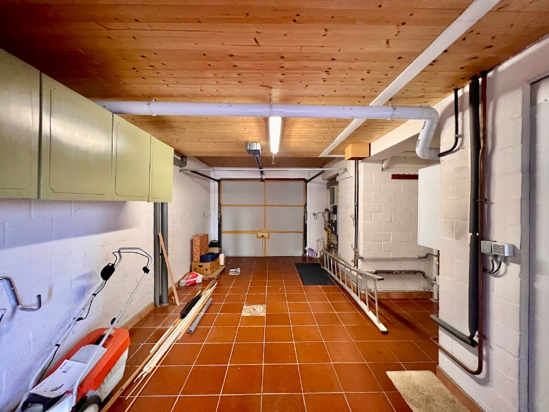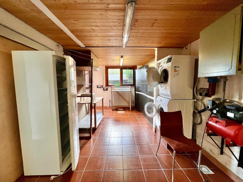 Verder vindt u op de gelijkvloerse verdieping nog een inkomhal met apart toilet en een garage met aanhorend een wasplaats/bijkeuken.